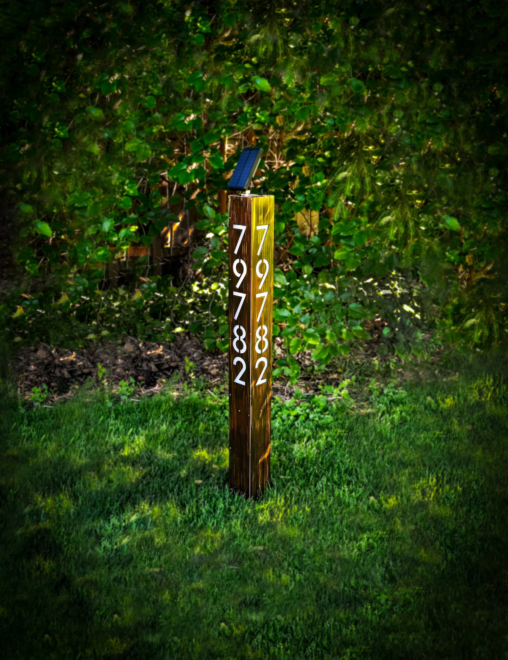43" Tall Custom Steel Address Sign, Solar Powered LED lighted.